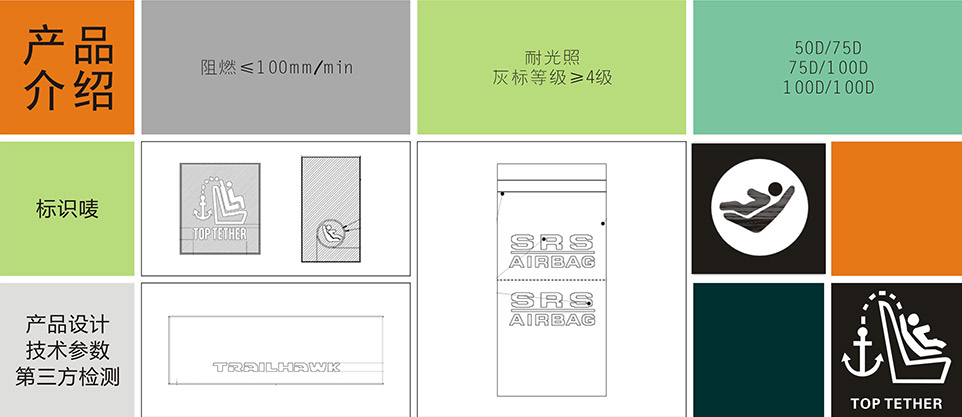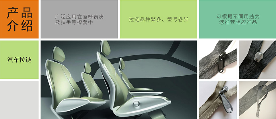 我們提供汽車(chē)專(zhuān)用拉鏈、標(biāo)識(shí)扣、標(biāo)識(shí)嘜、粘扣帶/刺毛帶,織帶/松緊帶,塑料扣件等其他汽車(chē)內(nèi)飾、汽車(chē)座椅系統(tǒng)部件。
